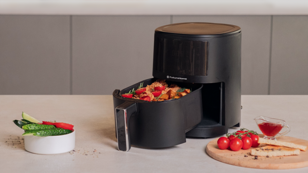 Если же поместить ингредиенты на решетку, то выделяемый сок будет стекать на дно чаши. У аэрогрилей FuturoHome решётка с антипригарным покрытием идёт в комплекте, отдельно докупать их не придется.